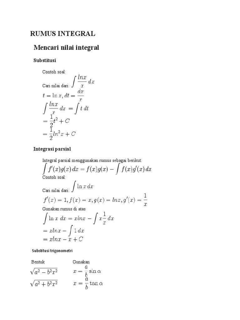 Integral Pengertian Rumus Parsial Subtitusi Tak Tentu from rumuspintar.com Contoh soal integral beserta jawabanya. Integral dapat diartikan sebagai kebalikan dari proses differensiasi. Nah berikut ini adalah contoh soal integral parsial untuk membantu kamu dalam memahami materi integral parsial. Contoh soal integral parsial kuliah. Untuk lebih memahami integral, perhatikan contoh soal dan pembahasan integral berikut ini. Contoh soal integral untuk kuliah. Yap betul saya maba sama seperti kalian semester 1. Contoh soal integral yang dapat di selesaikan dengan rumus integral parsial ialah sebagai berikut.